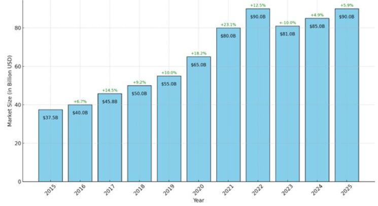 Néhány érdekes adat az online szerencsejáték-piacról Az online szerencsejáték-piac az utóbbi 10 évben hatalmas bővülésen ment keresztül. Globálisan nézve a teljes iparág értéke 2015-ben még körülbelül 37,5 milliárd dollár volt, ami 2023-ban egészen 80 milliárd fölé emelkedett. Ez körülbelül évi 10%-os növekedésnek felel meg, ami még a leggyorsabban bővülő iparágak között is kiemelkedőnek számít. A bővülés azonban semmi jelét nem mutatja a lassulásnak, és az előrejelzések szerint 2027-ig az iparág értéke akár a 125 milliárd dollárt is meghaladhatja.